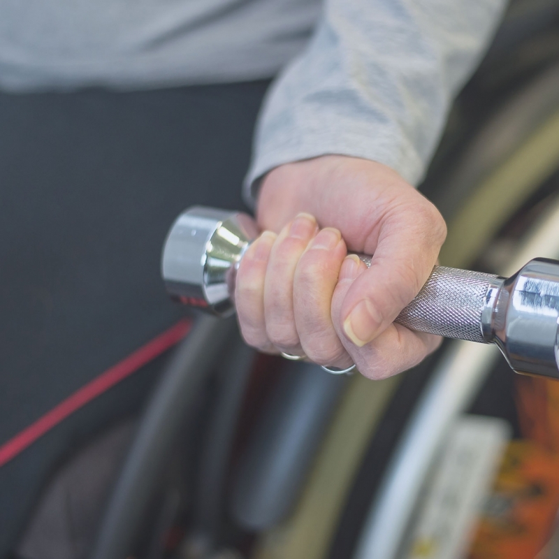 Koordination, Gleichgewicht und Stabilität: Diverse Hanteln/ elastische Therabänder/ Gymnastikbälle/ Wackelbretter/ Minitrampolin/ Schaumstoffmatte.